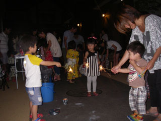 『マチトモ!』サポート、初めての花火大会。こちらのイベントも、分譲地内の有志の奥様方によるもの。主催のお一人Y様は、初めての企画ということで準備段階から『マチトモ!』事務局にご相談をいただき、アドバイスをさせていただきました。いろいろとご不安もあったようですが、当日は皆さんの笑顔を見て楽しそうにされていらっしゃいました。次回は、ハロウィンを企画されたいとのこと。これからますます分譲地内の交流が深まっていきそうです。