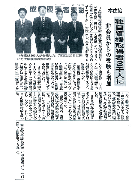 1月20日(火)に木造住宅産業協会が主催している、『木造ハウジングコーディネーター資格試験』の優秀成績者表彰式が行われ、ポウハウス新越谷アルジール展示場の仲本 凌社員が受験者323名のうち全国4位となり、優秀成績者として表彰されました。 今回表彰された4名の中で、仲本社員のみが入社一年目だったこともあり、木住協関係者や表彰式に来られていたマスコミ関係者からもお褒めの言葉をいただきました。 今回の表彰で、ポラスグループでは4年連続の表彰となりました。