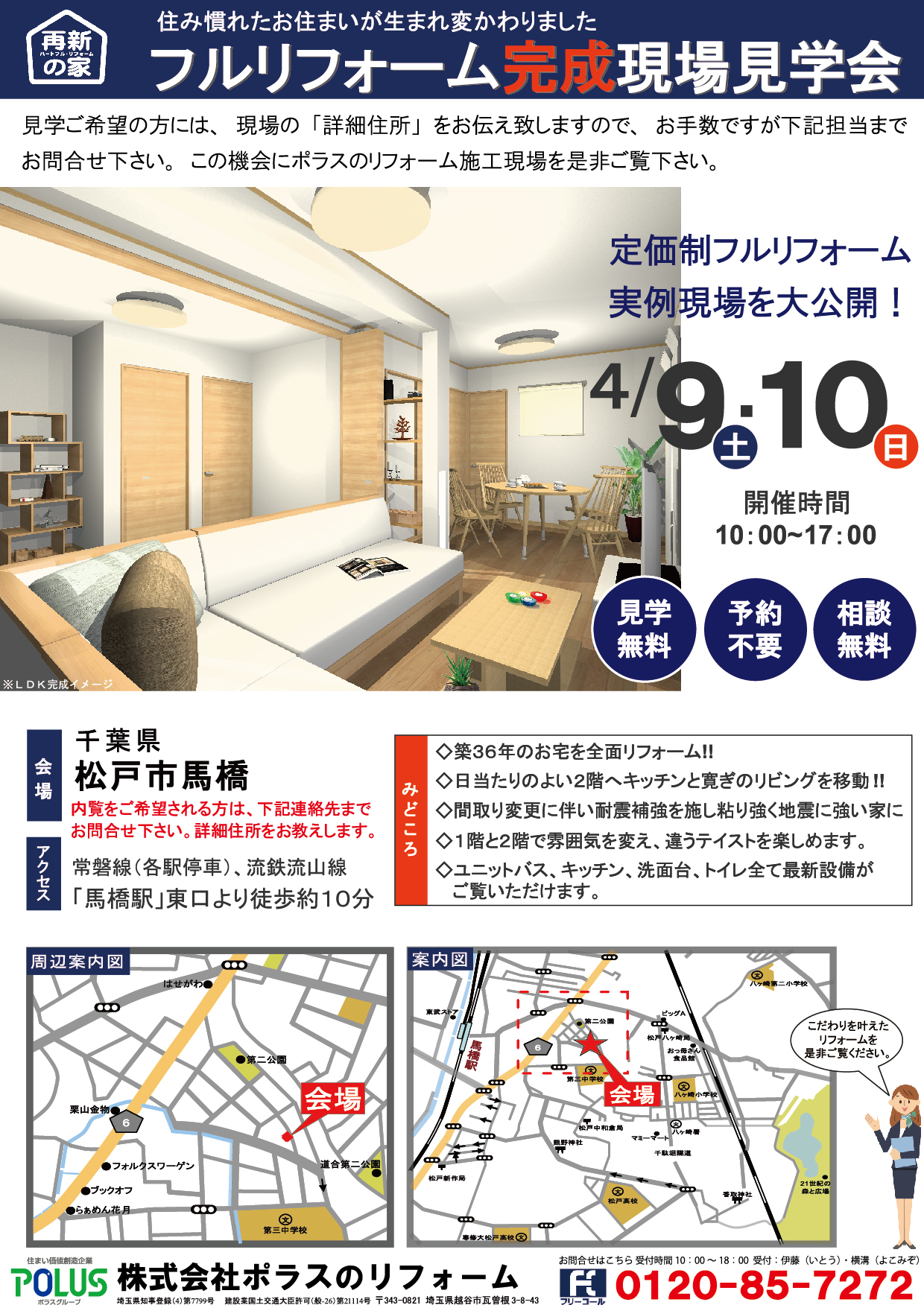 4/9(土)、10(日) 『千葉県松戸市・築36年戸建住宅』のフルリフォーム完成現場をご覧頂けます。詳しくはこちら!!>>>