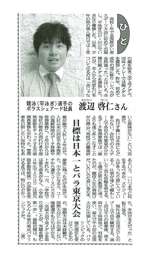 ポラスグループの「ポラスシェアード㈱ 渡辺啓仁社員」が、仕事と両立を図りながらの競技活動(競泳・平泳ぎ)や今後について語った記事が紹介されています。