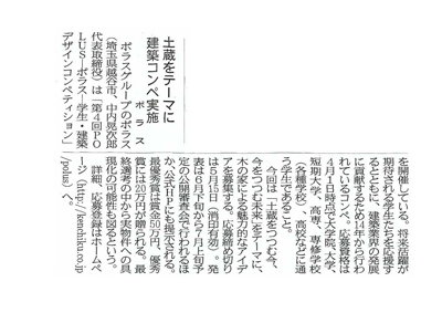 ◆「第4回 POLUS -ポラス-学生・建築デザインコンペティション」についてのニュースリリースはこちらをご覧ください