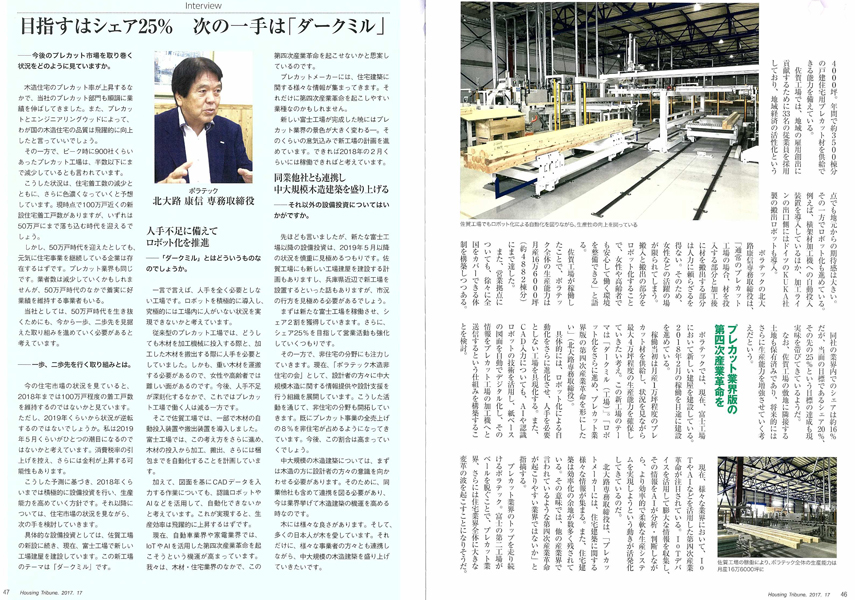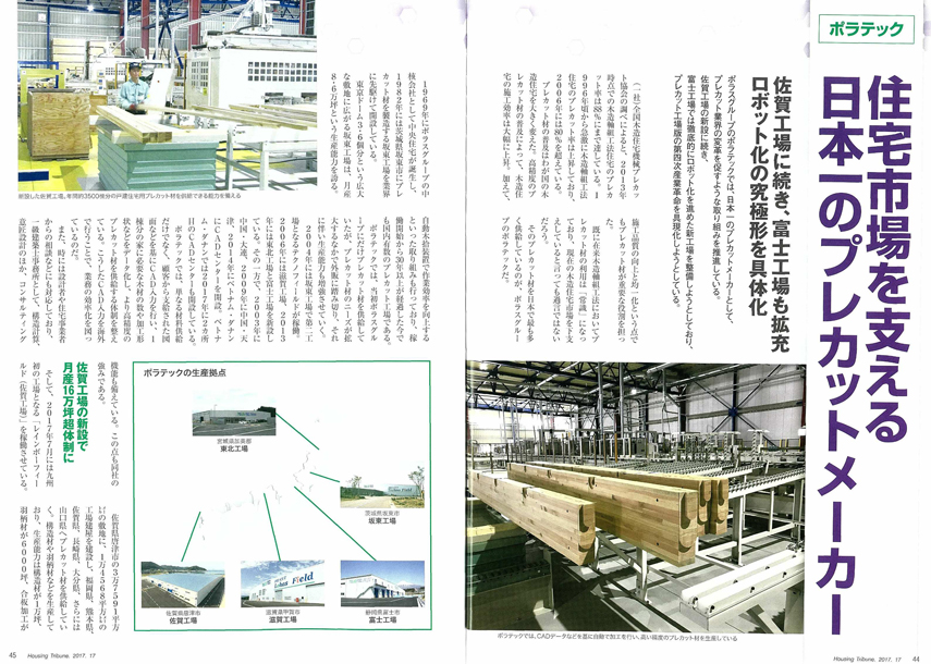 ハウジング・トリビューンにおいて「住宅市場を支える日本一のプレカットメーカー」として、ポラテックの取り組みが掲載になりました。