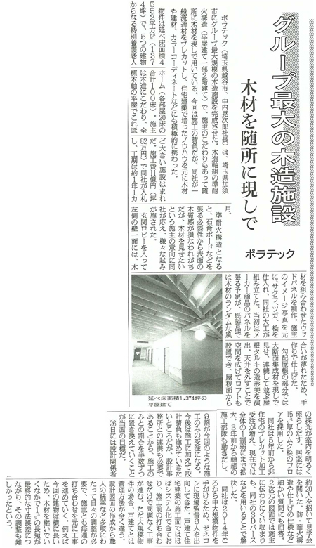 ポラテックが埼玉県加須市にグループ最大規模の木造施設の特別養護老人ホームを完成させた記事が掲載されました。