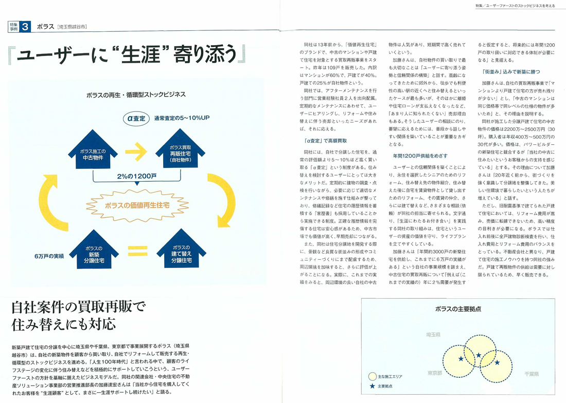 『ユーザーファーストのストックビジネスを考える』特集において、ポラスグループの買取再販事業についての記事が掲載されました。