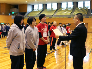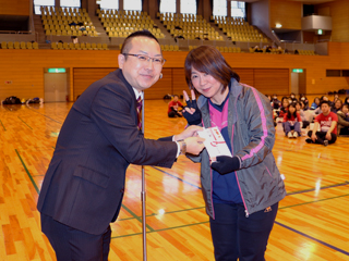 表彰式では皆さんの前で賞状を授与 |