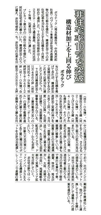 ※掲載記事をクリックすると拡大します 日刊木材新聞 2019年7月30日掲載