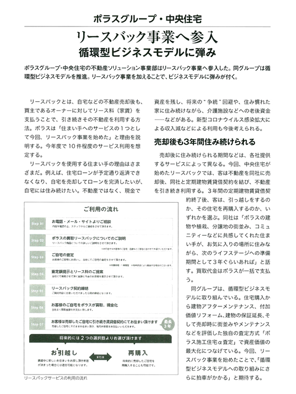※掲載記事をクリックすると拡大します ハウジングトリビューン 2020年6月12日掲載