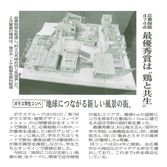 ※掲載記事をクリックすると拡大します 週刊住宅 2020年9月14日掲載