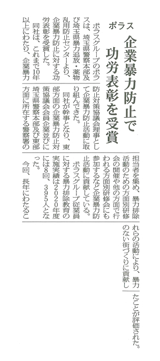 ◆『企業暴力防止に対する功労表彰を受賞』のニュースリリースはこちらをご覧ください