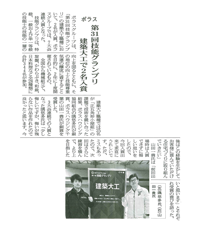 ◆「第31回技能グランプリ受賞」についてのニュースリリースはこちらをご覧ください
