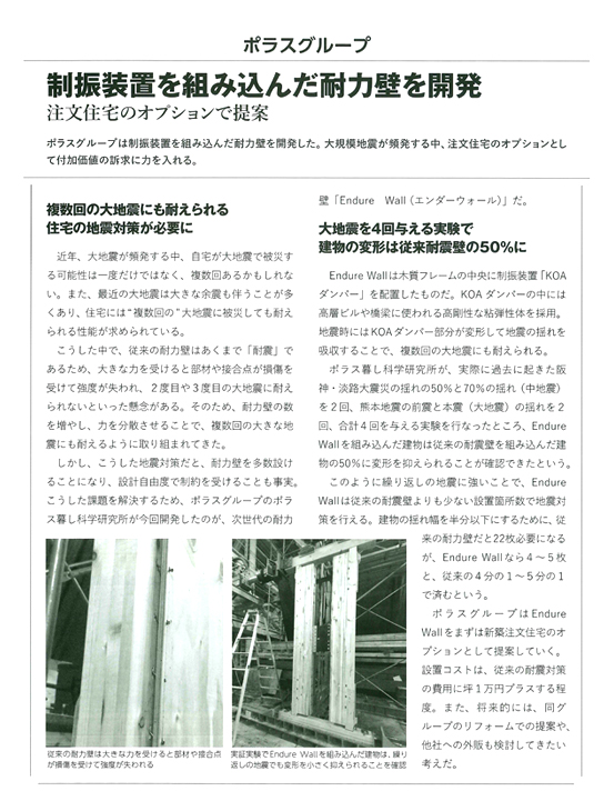 ◆『耐震+制振の性能を併せ持つ高性能耐力壁「Endure Wall」を開発』のニュースリリースはこちらをご覧ください