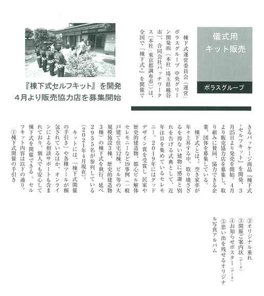 ※掲載記事をクリックすると拡大します ハウジングトリビューン 2021年5月15日掲載