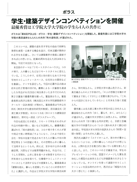 ※掲載記事をクリックすると拡大します ハウジングトリビューン 2021年7月9日掲載