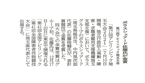 ◆『第17回アビリンピック埼玉大会2021』における受賞のニュースリリースはこちらをご覧ください