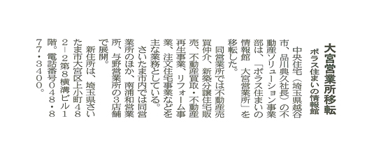 ◆『ポラス住まいの情報館 大宮営業所が移転しオープン』のニュースリリースはこちらをご覧ください