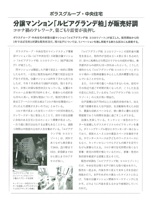 ※掲載記事をクリックすると拡大します ハウジングトリビューン 2021年10月29日掲載