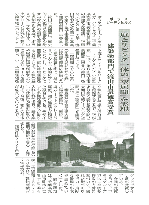 ◆『第7回流山市景観賞(建築物部門)を受賞』のニュースリリースはこちらをご覧ください