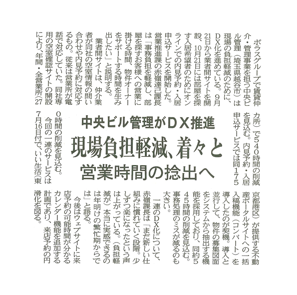 ※掲載記事をクリックすると拡大します 住宅新報 2021年12月14日掲載
