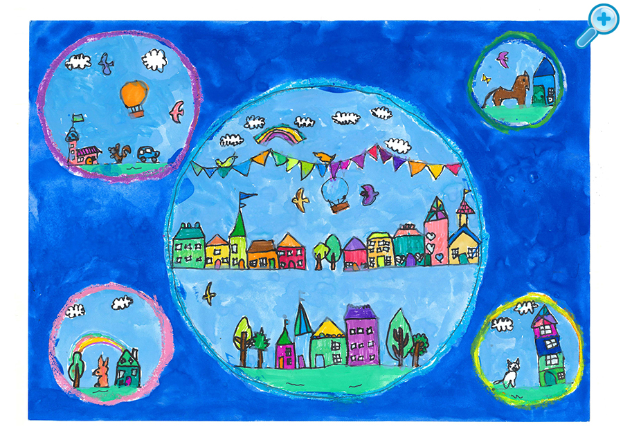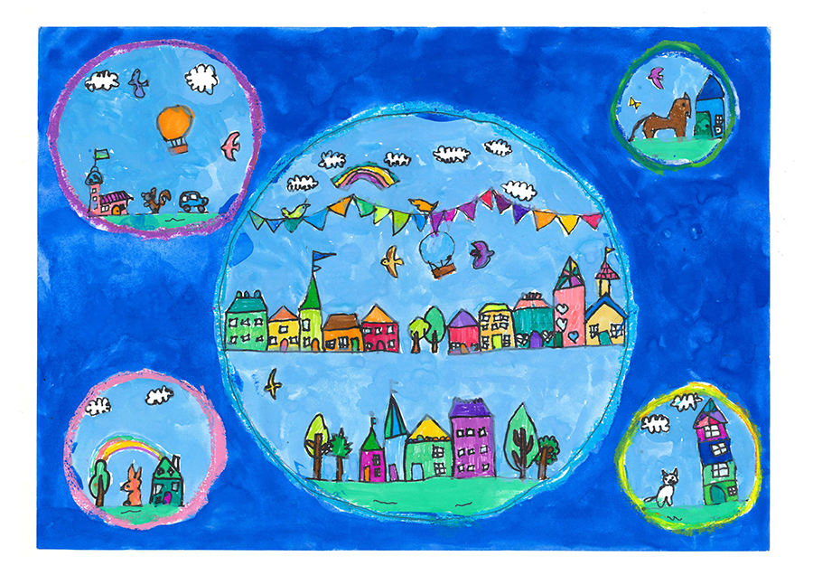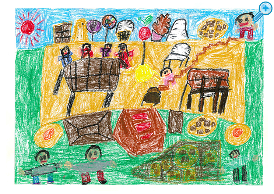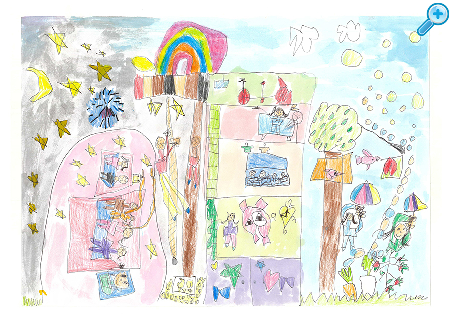 今回は3,085点もの作品が届きました。どの作品も素晴らしく、未就学児のお子さまならではの、自由な発想で、夢の「家」「街」がのびのびと描かれていました。