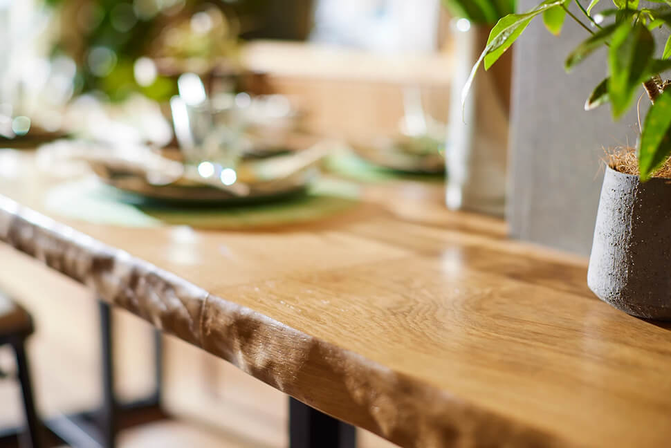 家族みんなで囲むことができる天然⽊のカウンターテーブル