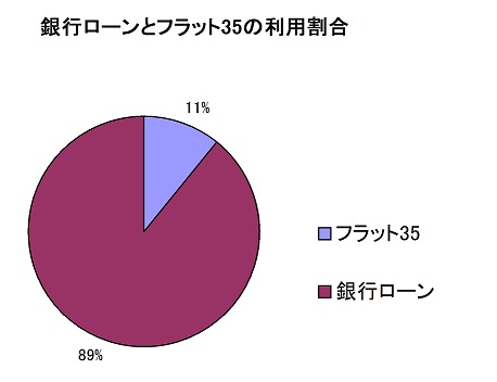 データ上は、ローンを組む方の約9割が銀行ローン、約1割がフラット35となっており、圧倒的に銀行ローンが多くなっています。