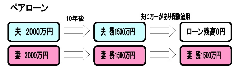 ※ペアローン・・・・原則として同居している親族の方と一緒に、それぞれが主債務者として住宅ローンを組むことです。 お互いが相手の債務に対する連帯保証人となります。ローンは2本になります。