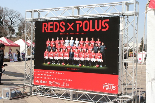 まず、一番の目玉は、ポラスが選手を撮影して制作した30秒のスタジアム内大型ビジョン映像が初お披露目になります。