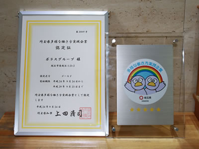 このたび、ポラスグループが埼玉県の「多様な働き方実践企業」に認定されました。この制度は、仕事と子育て等の両立を支援するため、短時間勤務など多様な働き方を実践することで、女性がいきいきと働き続けられる環境づくりを行っている企業等を県が認定するものです。